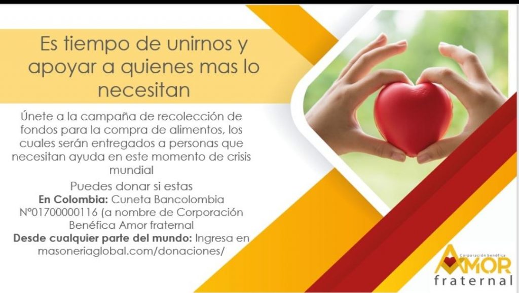 La corporación Benéfica Amor Fraternal, es una entidad sin ánimos de lucros compuesta por hermanos masones residentes en distintos lugares del planeta. Esta iniciativa nace como una necesidad de desarrollar el sentido filantrópico y de humanidad que existe en el corazón de los masones. La misión de esta entidad es desarrollar planes y proyectos solidarios […]